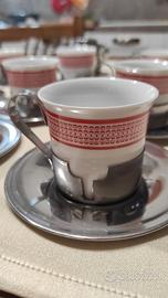 Set composto da 12 tazzine da caffè in porcellana e acciaio inox e zuccheriera in acciaio inox Rivadossi La Termica Jolly mai utilizzato. Tutto originale anni '80