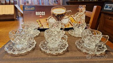 Vendo bellissimo set composto da 6 tazzine e 6 piattini in vetro lavorato della Elmas, design modello "Ricci".