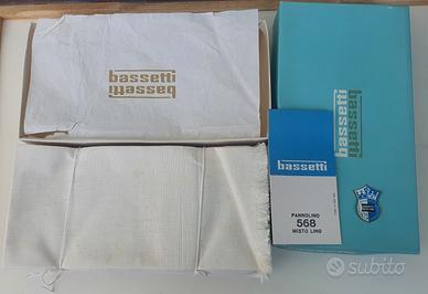Set di 12 pannolini / tovaglioli in lino Bassetti , misura 50x50 , nuovi in scatola originale , originali vintage anni 60 70 .