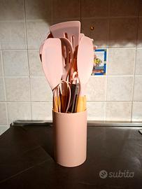 Set 12 Utensili Cucina Silicone Rosa e Legno Sec