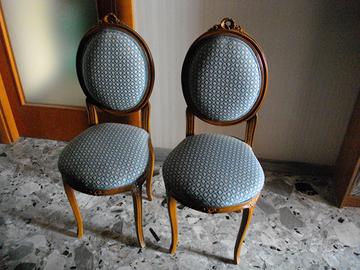 Visibili a Nocera Inf. SA : 6 in mogano e sedute completamente rifatte e tappezzeria in velluto setato verdeoro e 6 in noce laccato antracite con sedute rifatte completamente e tappezzate in vinaccia. Coppia in tessuto cotone setato Bleu de France