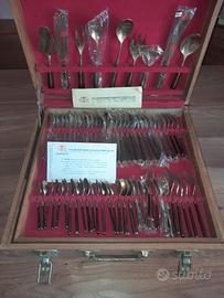 L'ho comprato alla fine degli anni '70 (nella foto il certificato di garanzia insieme ai documenti originali del produttore). Li ho conservati nella sua valigetta originale. Ho usato questo set circa 4 o 5 volte nel corso degli anni la gran parte delle posate sono ancora sigillate.
