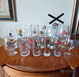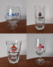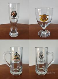 Set 15 bicchieri di varie marche: Franziskaner, Ciney, Havana Club, Ceres, Bud, Brown Bear, Veltins, Maes, Lowenbrau, John Martin, McFarland, Grimbergen, Kaiser, Birra Moretti (boccale brandizzato della UEFA Champions League)