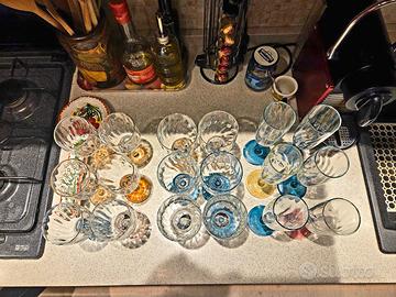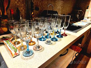 Set 18 pezzi Calici Vetro Gambo Colorato