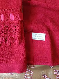 Merletto ai bordi e nastrino di raso rosso. 💯 cotone.