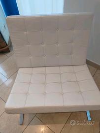 MDF ITALIA set di due BELLISSIME poltrone modello Barcelona 2006 prodotte dalla milanese MDF ITALIA. Design by Ludvig Mies van der Rohe e Lilly Reich 1929. Struttura in profilato di acciaio Mannesmann cromato a specchio, rivestimento esterno dei due cuscini con bottoni a trapunta ( tappezzerie a Capitonnè) in spessa e pelle martellata da 2,5 mm in bianco. Entrambe in OTTIMIE CONDIZIONI. Minimo utilizzo, tenute molto, molto bene.