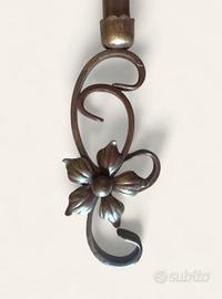 Elegante e funzionale set vintage da 2 bastoni per tende, ideale per ambienti in stile classico, rustico o shabby chic. Ogni bastone è completo di supporti da parete, zineffe telescopiche e anelli per tende: tutto l’occorrente per un’installazione pratica e decorativa. Realizzati in metallo robusto (probabile ferro battuto o bronzo scuro), i bastoni hanno una finitura anticata e un terminale decorato a fiore stilizzato, dal forte impatto estetico. 📐 Misure approssimative: ✔️ Zineffe/Aste telescopiche (estensibili fino a): 202 cm ✔️ Lunghezza bastone principale (braccio decorativo): 90 cm ✔️ Lunghezza supporti da parete: 23 cm 📌 Condizioni: Il set è in ottimo stato vintage. I bastoni sono solidi, funzionanti, con normali segni del tempo che confermano l’autenticità e aggiungono carattere al pezzo. Le foto mostrano tutti i dettagli per massima trasparenza. ✔️ Spedizione veloce ✔️ Risposta rapida 📩 Per info o altre foto, scrivimi pure! Rispondo velocemente. — Parole chiave: bastoni per tende vintage, set bastoni tende, zineffe vintage, supporti tende ferro battuto, bastoni decorativi tenda, terminali floreali tenda, bastoni bronzo anticato, arredo shabby, accessori tende classici, bastoni regolabili tende Keywords (English): vintage curtain rods, floral curtain poles, telescopic curtain rods, metal curtain hardware, antique bronze rods, adjustable curtain set, classic home decor, shabby chic accessories, window rod set, decorative curtain fixtures