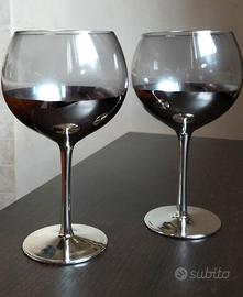 set 2 bicchieri ballon vetro sfumato e argento,nuovi