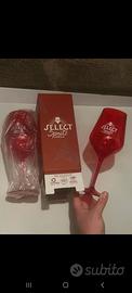 set di 2 calici select (in plastica). inoltre insieme ai calici sono comprese 2 cartoni porta bottiglia sempre brand select e 2 shopper select. gli articoli arriveranno imballati in maniera impeccabile con l'utilizzo di carta pluriball.