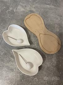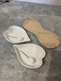•2 ciotoline a forma di cuore in ceramica smaltata (ideali per olive, formaggi, salse…)