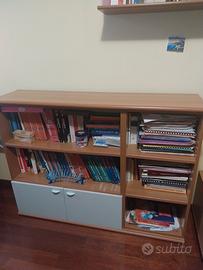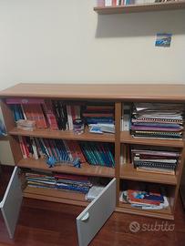 set 2 comodini e libreria in legno tinta noce e acquamarina ideale per cameretta bambini e ragazzi realizzati da falegname artigiano