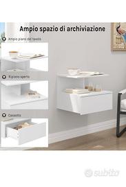 Set di 2 Comodini Sospesi per Camera da Letto con 1 Cassetto e 1 Scomparto Aperto, Fissaggio a Parete. In Legno bianco, 40x35x31cm. Mai utilizzati, uno montato e poi smontato, l'altro mai aperto. Confezione originale. Vendo per inutilizzo. Modello presente su amazon a 59,00 euro.