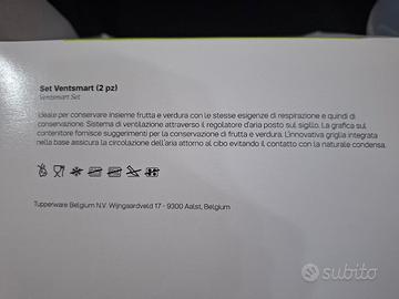 Set 2 contenitori Tupperware Ventsmart (o Frigosmart) da 800 ml e 1800 ml, progettato per prolungare la freschezza di frutta e verdura in frigorifero.