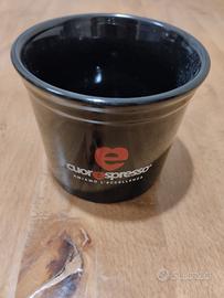 Set 2 coppette gelato e cucchiaini realizzati in ceramica e personalizzati CUORESPRESSO mai usati. Dimensioni: 8,5 x 7 cm. Lavabili in lavastoviglie