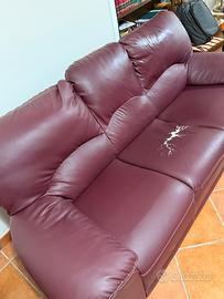 Set di due divani in similpelle color bordeaux (2 posti + 3 posti).