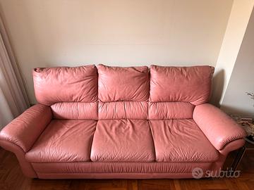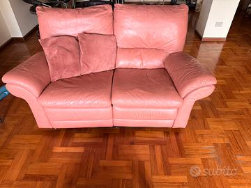 Set di 2 divani da 2 e da 3 posti in vera pelle sui toni del rosa. Prodotti da Poltrona Frau. Due divani importanti che danno un tocco di classe al proprio soggiorno. Lievi segni di usura