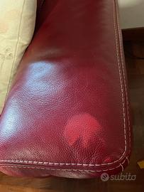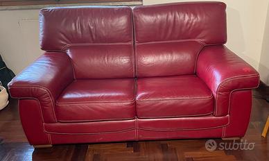 Vendesi 2 divani (2 posti + 3 posti) in pelle vera rosso bordeaux. Lievemente scolorito su un bracciolo (divano 2 posti, 3a foto). Ritiro a domicilio, NO CONSEGNA. Si vendono in coppia, il prezzo e' totale per due divani