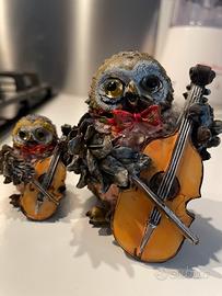 - Design unico con gufi musicisti h. 8 e 4 cm