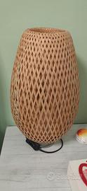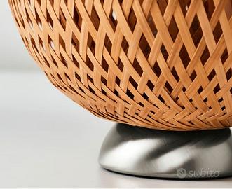 Il paralume in bambù intrecciato crea un motivo decorativo sulla parete.