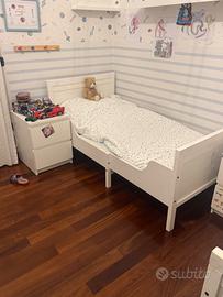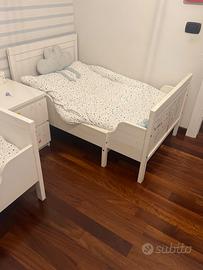 Vendo due lettini Ikea modello SUNDVIK allungabili con due comodini abbinati. I letti sono muniti anche di materasso allungabile. POSSIBILE VENDITA SEPARATA( un solo lettino e un solo comodino) POSSIBILE VENDITE DI SOLI COMODINI O SOLI LETTINI Il prezzo comprende entrambi gli articoli Gli adesivi sono rimovibili
