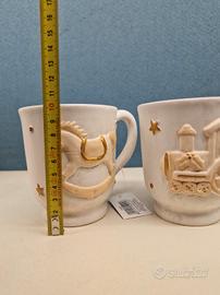 Vendo questo set da 2 tazze mug in terra cotta della marca "RTDECOR". Non vanno in microonde, si usano principalmente per decorazione. Se ne vuole di più, me lo dica..
