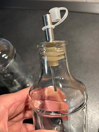 Set di due oliere in vetro, ideali per olio o aceto. Vendo causa inutilizzo.