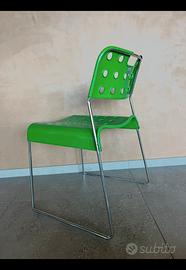 Dettagli: Seduta e schienale in acciaio stampato verde, struttura cromata.