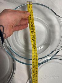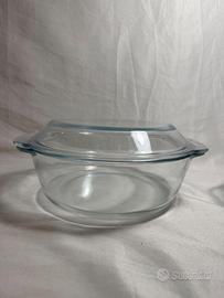 Set composto da 2 pirofile rotonde in vetro con coperchio, in condizioni perfette. Vetro spesso e resistente, adatte per: • forno • frigorifero • portare direttamente in tavola Ideali per lasagne, sformati, torte salate, contorni, arrosti e preparazioni da conservare. 📏 Misure: • Diametro 22 cm – altezza 7 cm • Diametro 20 cm – altezza 7 cm Complete di coperchi in vetro coordinati. Nessuna crepa o sbeccatura. Vendute in set.