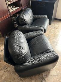 Coppia di poltrone in pelle nera di Arrigo Arrigoni per Busnelli, produzione anni '70.