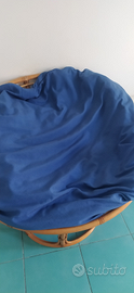 2 Poltrone grandi rotonde in vimini con cuscini dotati di federa blu ..alcune parti sono da sistemare .. Il prezzo non è per entrambi...è per singola poltrona