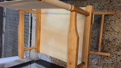Ogni cartone (imballo) contiene 2 telai poltrone in legno naturale di facile apertura +kit di 2 sedute e 2 schienali in robusta tela di cotone facilmente infilabili , il colore disponibile di tessuto completo è Ecrù (Tela Grezza Naturale) di facile lavaggio, il telaio in Legno naturale finitura opaca.