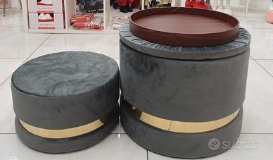 NUOVO SET 2 PEZZI POUF IN MORBIDISSIMO VELLUTO CON FASCIA ORO😍😍