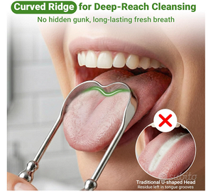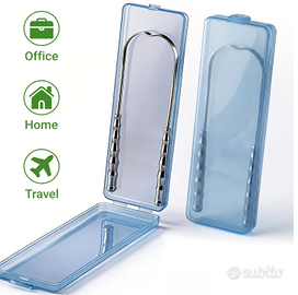 Set 2 Pulisci Lingua in Acciaio Inox con Custodie – Igiene Orale Top Vendo set composto da 2 pulisci lingua professionali in acciaio inox, ideali per migliorare l’igiene orale quotidiana in modo semplice ed efficace. 🔹 Caratteristiche principali: ✅ Rimozione efficace della patina: aiuta a mantenere l’alito fresco e la bocca pulita ✅ Acciaio inox resistente: materiale durevole, igienico e di qualità superiore rispetto alla plastica ✅ Design a U ergonomico: flessibile e comodo da usare, raggiunge facilmente tutta la lingua ✅ Bordi lisci e delicati: pulizia efficace senza irritazioni ✅ Set da 2 pezzi: perfetto per uso personale o da condividere ✅ Custodie incluse: ideali per viaggi, palestra o lavoro ✅ Facile da pulire: lavabile sotto acqua calda o in lavastoviglie 📦 Condizione: nuovo spedizione veloce 🎒 Perfetto per casa e viaggio Uno strumento semplice ma davvero utile per la cura quotidiana della bocca