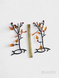 Set 2 Sculture Decorative Albero in Metallo e vetr