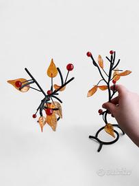 Set composto da due sculture decorative in metallo che raffigurano alberelli stilizzati, ideali come centrotavola, decorazione per mensole, librerie o mobili d’appoggio. La struttura è realizzata in metallo, mentre le foglie sono in vetro. Le sculture sono arricchite da piccole sfere rosse lucide, che ricordano delle bacche autunnali. Design armonioso e versatile, perfetto per ambienti moderni, classici o dal gusto naturale. 📌 Condizioni: in ottimo stato generale, senza rotture o difetti evidenti. 📏 Misure: • Altezza: 22 cm (ciascuna scultura) 🔹 Dettagli tecnici: • Tipologia: Sculture decorative • Soggetto: Alberelli stilizzati • Materiale struttura: Metallo • Materiale foglie: Vetro • Dettagli: Sfere decorative rosse • Utilizzo: Centrotavola, mensola, decorazione interna • Condizioni: Ottime Per qualsiasi informazione o altre foto, scrivimi pure! Risposta rapida 📩 Spedizione accurata garantita 📦 --- Parole chiave: sculture decorative, albero decorativo, albero in metallo, foglie in vetro, decorazioni casa, centrotavola moderno, decorazioni mensola, arredo elegante Keywords: decorative sculptures, metal tree decor, glass leaves decor, home decoration, centerpiece decor, interior decor, decorative objects