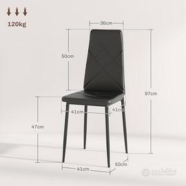CONFORTEVOLI: Le nostre sedie imbottite con morbido rivestimento in finta pelle offrono una seduta confortevole e sono facili da pulire con un semplice panno umido