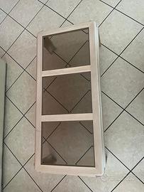 Vendo due tavolini da salotto abbinati, realizzati in legno massello chiaro con piano in vetro temperato.