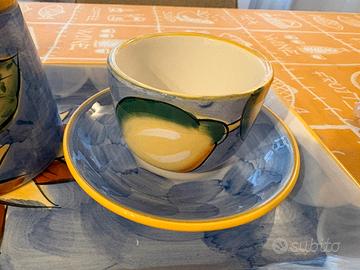 Set 2 tazzine da caffè con piattini, zuccheriera e vassoio Dipinto a mano con limoni e girasoli Nuovo, mai utilizzato (solo aperta la confezione)