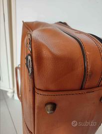 Vendo set di 2 valigie vintage originali marca Brics, colore marrone cuoio, stile classico ed elegante. Valigie rigide, robuste e capienti, ideali come valigie da viaggio vintage, arredo, scenografia, collezione o per chi ama lo stile retrò.