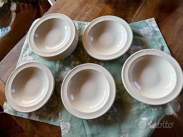 «La tavola non è solo un luogo dove si mangia, ma uno spazio dove si coltiva la bellezza e la condivisione.» Per gli amanti dell'eccellenza in cucina, propongo questo raffinato set di piatti firmati Emile Henry, iconico marchio della tradizione ceramica francese. La colorazione Argilla (Crema) offre un'eleganza sobria e naturale, perfetta per ogni stile di arredamento. Il servizio è realizzato in ceramica HR® (High Resistance), nota per l'estrema robustezza e la resistenza termica. Composizione del set: 7 Piatti Piani 9 Piatti Fondi 10 Piatti Frutta/Dolce Perché scegliere la qualità Emile Henry: Resistenza: I piatti possono passare direttamente dal congelatore al forno o al microonde senza subire shock termici. Praticità: Lavabili in lavastoviglie e studiati per essere perfettamente impilabili, salvaguardando lo spazio in dispensa. Stato dell'oggetto: Il set è usato ma in ottime condizioni generali. Presenta esclusivamente lievi segni superficiali dovuti al normale utilizzo quotidiano, che non ne intaccano la solidità né lo splendore. Consegna e Spedizione: Data la delicatezza dell'articolo, preferisco il ritiro a mano. Resto comunque disponibile alla spedizione, i cui costi e l'organizzazione saranno a totale carico dell'acquirente.