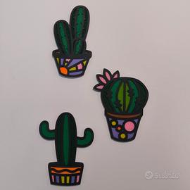 Vendo set composto da 3 cactus decorativi realizzati in legno (si due livelli) e feltro colorato. Ogni pezzo è curato nei dettagli e presenta uno stile vivace e moderno, perfetto per dare un tocco originale e creativo a qualsiasi ambiente. Ideali per decorare pareti di casa, camerette, studio o ufficio. Quantità: 3 pezzi (come da foto) Dimensioni: 15x20 cm ciascuno Materiali: legno + feltro colorato Stile: moderno / creativo / boho Perfetti anche come idea regalo originale 🎁
