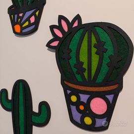 Set 3 cactus decorativi in legno e feltro