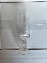 Vendo set di 3 calici modello flute in vetro vintage lavorato. I bicchieri presentano una forma slanciata e cilindrica, ideale per spumante, prosecco o champagne.