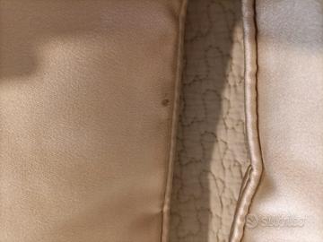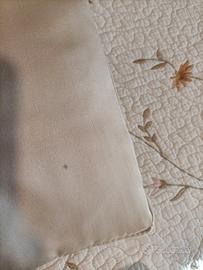 Set di 3 cuscini, in tessuto satinato, di colore beige-grigio. Molto fini ed eleganti. Hanno qualche macchiolina che dovrebbe venire via lavando le fodere.