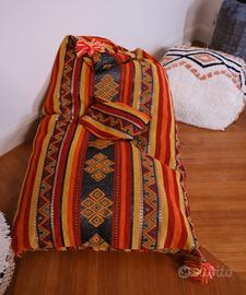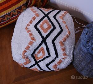 Vendo set di 3 cuscini/pouf decorativi in stile etnico/boho, ideali per arredare soggiorno, camera da letto o area relax. Perfetti come seduta aggiuntiva, poggiapiedi o elemento decorativo.