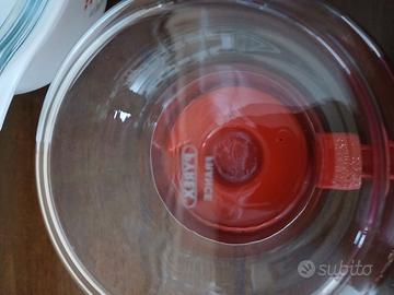 set 3 elementi della Pyrex vintage, 2 teiera o bollitori e una ciotola con vetro in vetro. Articoli vintage e rari.Mai usati.
