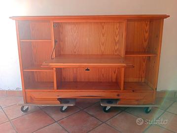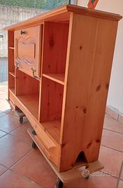 Vendo set di 3 mobili da soggiorno in legno di pino, in ottime condizioni, ideali per arredare soggiorno o zona living in stile caldo e naturale.