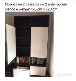 Regalo Set di 3 mobili sala: porta tv con cassetti, pensile con 2 ante, mobile con ante e spazi a giorno. Wenge’ e laccato bianco.