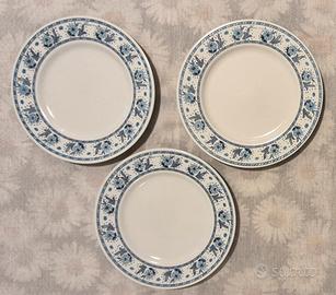 Set 3 piatti piani in porcellana francese alta qualità Provence en Fleur, bianchi con bordo decorato a fiori azzurri, diametro in foto, stupendi, nessuna sbocconcellatura e realmente in ottime condizioni. €13 + eventuali sa. Possibile consegna a mano a Milano, Monza, Lecco e, saltuariamente, Torino.