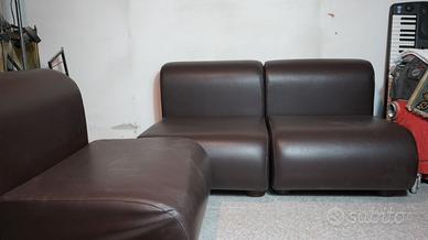 Vendesi set composto da 3 moduli divano/poltrona in ecopelle color marrone scuro.